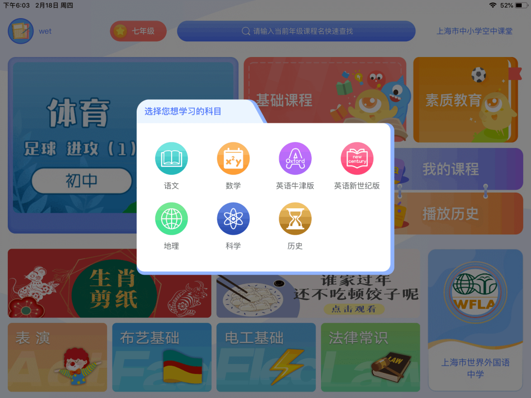 2、首次进入“空中课堂”,选择年级