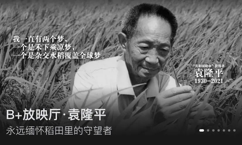 百视TV在首页大图“B+放映厅”醒目位置上线了电影《袁隆平》,电影围绕袁隆平30至60岁阶段的故事展开,让观众从光影中再次真切感受袁隆平先生在杂交水稻始祖“三系配套”研究中所付出的牺牲和艰辛;而“涨知识”板块则通过纪录片《稻之道》,向观众展现了老先生在田间地头工作的珍贵画面,同时也让观众再次近距离了解老先生是如何为了他那个“无人饥饿”的毕生追求所走过的长长道路。我们感谢老先生,感谢“每一粒稻米”。
