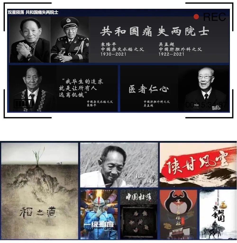 2021年5月22日,91岁的“杂交水稻之父”袁隆平院士和99岁的“肝胆外科之父”吴孟超院士相继离世,举国悲痛。东方明珠新媒体股份有限公司各播出平台迅速反应,手机移动端百视TV、电视大屏当天就推出一系列特别策划,以电影、纪录片、人物访谈等多种形式大篇幅报道两位院士的生平事迹,并在首页首屏加大推荐力度,追思袁隆平院士和吴孟超院士。