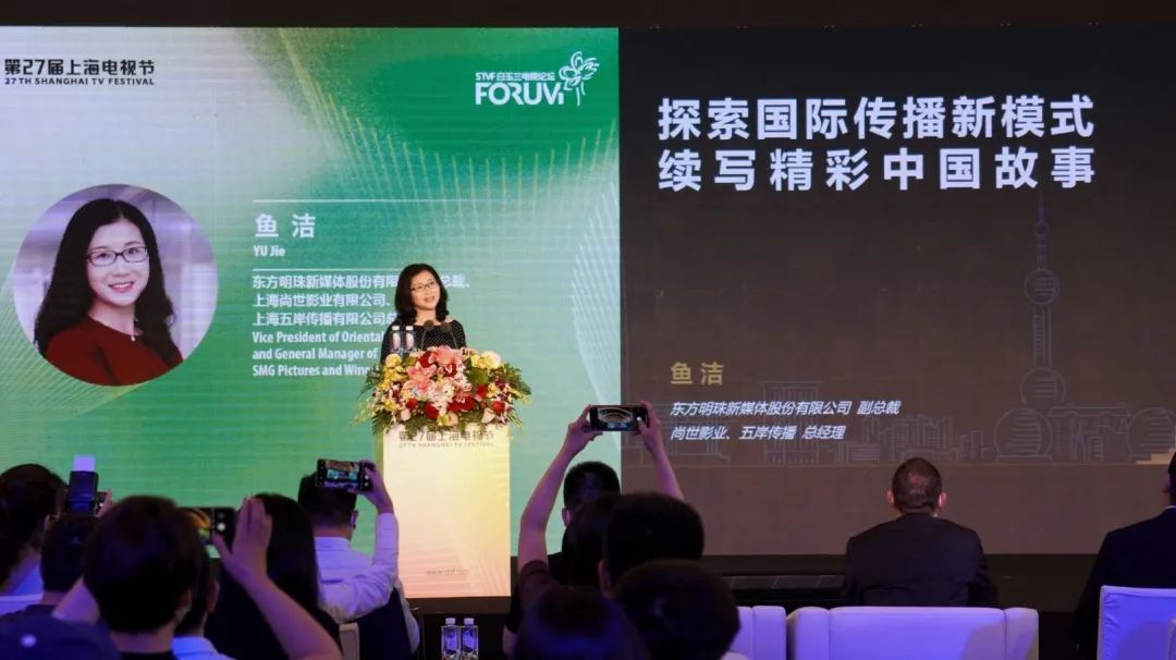 6月7日下午,第27届上海电视节“新形势·新平台·新机遇——国际电视合作论坛”在上海展览中心举行。中外各大影视公司及平台代表汇聚一堂,就疫情影响下的国际合作模式创新、海外传播渠道拓展、流媒体发展、5G技术高速加持内容传输等关键议题,共同探讨新时代背景下国际电视合作的新蓝图。东方明珠新媒体股份有限公司副总裁鱼洁作为首位受邀嘉宾,发表题为《探索国际传播新模式 续写精彩中国故事》的主题演讲,并分享了东方明珠新媒体在流媒体战略下,影视生态建设的最新成果。