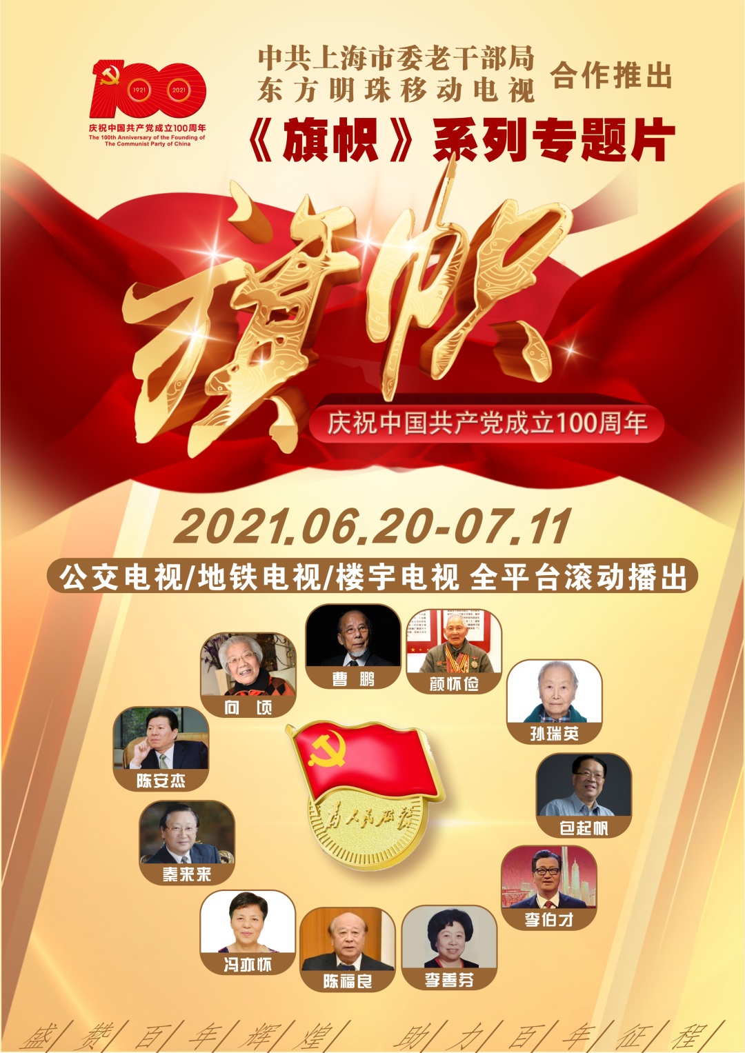 移动电视与中共上海市委老干部局合作推出“旗帜”系列专题片,邀请11位离退休干部党员讲述亲身经历,从不同方面展示中国共产党人身上所具有的精神品质,体现党的时代性和先进性。