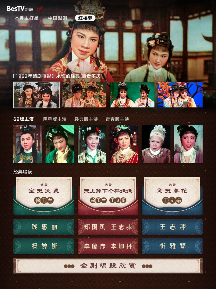 这次以《红楼梦》首轮开演为契机,百视通和上海越剧院进行了新一轮深化合作的交流,双方决定将在金秋十月,在百视通IPTV、OTT全渠道重磅上线精心开发的越剧专区“中国越剧”,推出名家名剧赏析,打造越剧文化课堂。