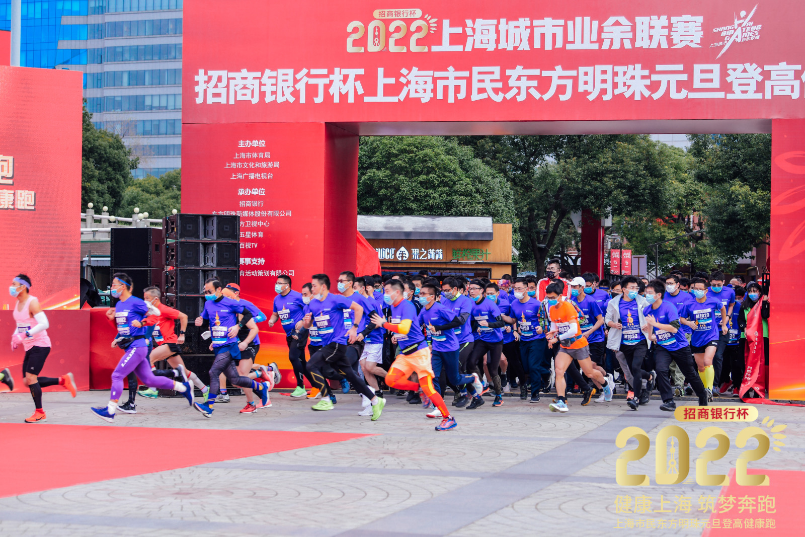 2022年1月1日上午9:00,2022年“招商银行杯”上海市民东方明珠元旦登高健康跑于东方明珠广播电视塔举行。本届元旦登高健康跑以“健康上海 筑梦奔跑”为主题,旨在共建共享健康上海,加快打造全球著名城市,凸显在书写新时代答卷进程中,上海市民高昂的热情和开拓进取的精神风貌。本次活动由上海市体育局、上海市文化和旅游局、上海广播电视台联合主办,招商银行、东方卫视中心、五星体育、东方明珠新媒体股份有限公司共同承办。