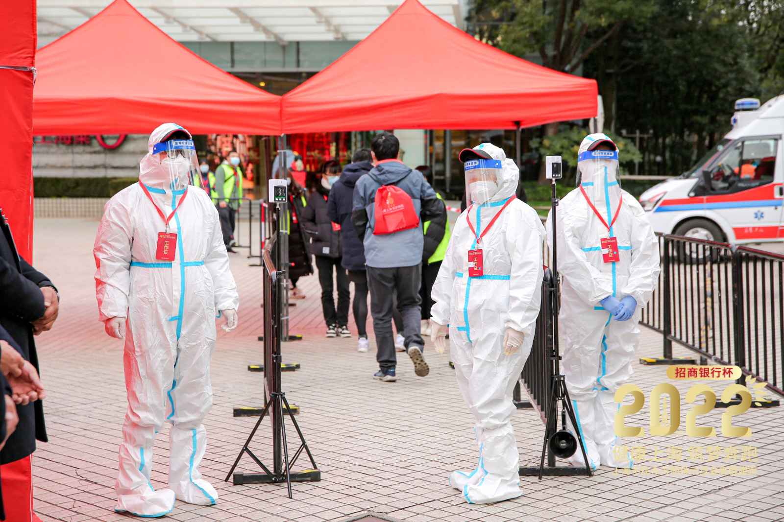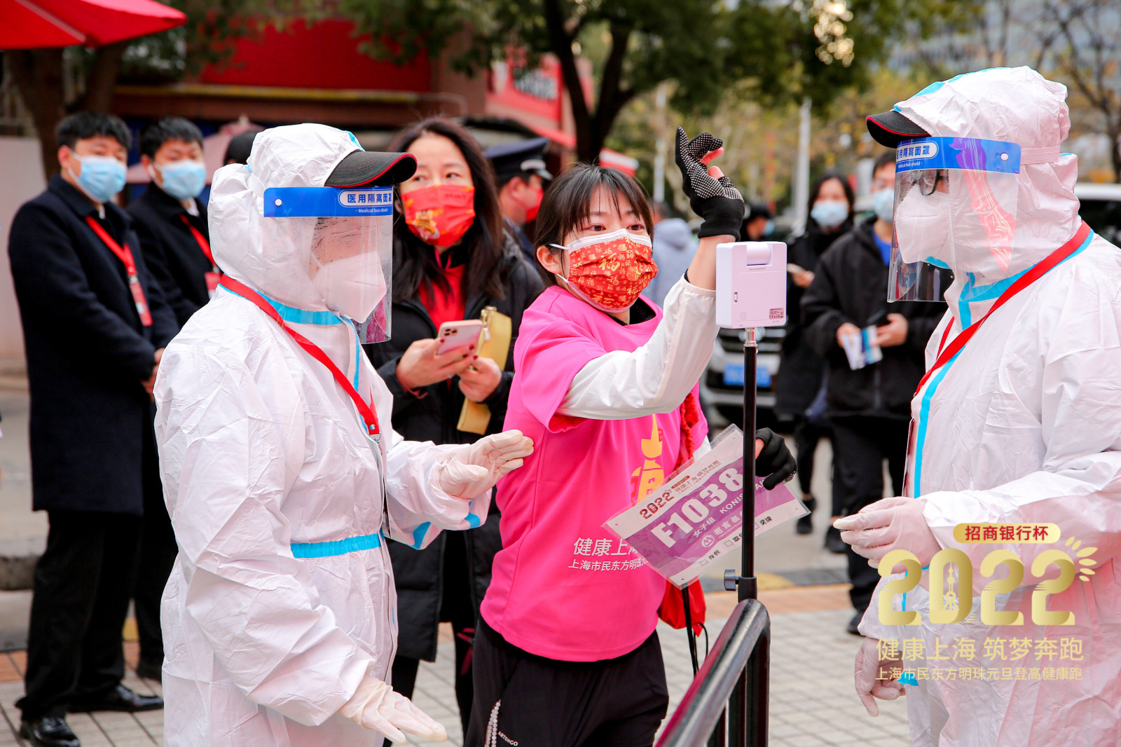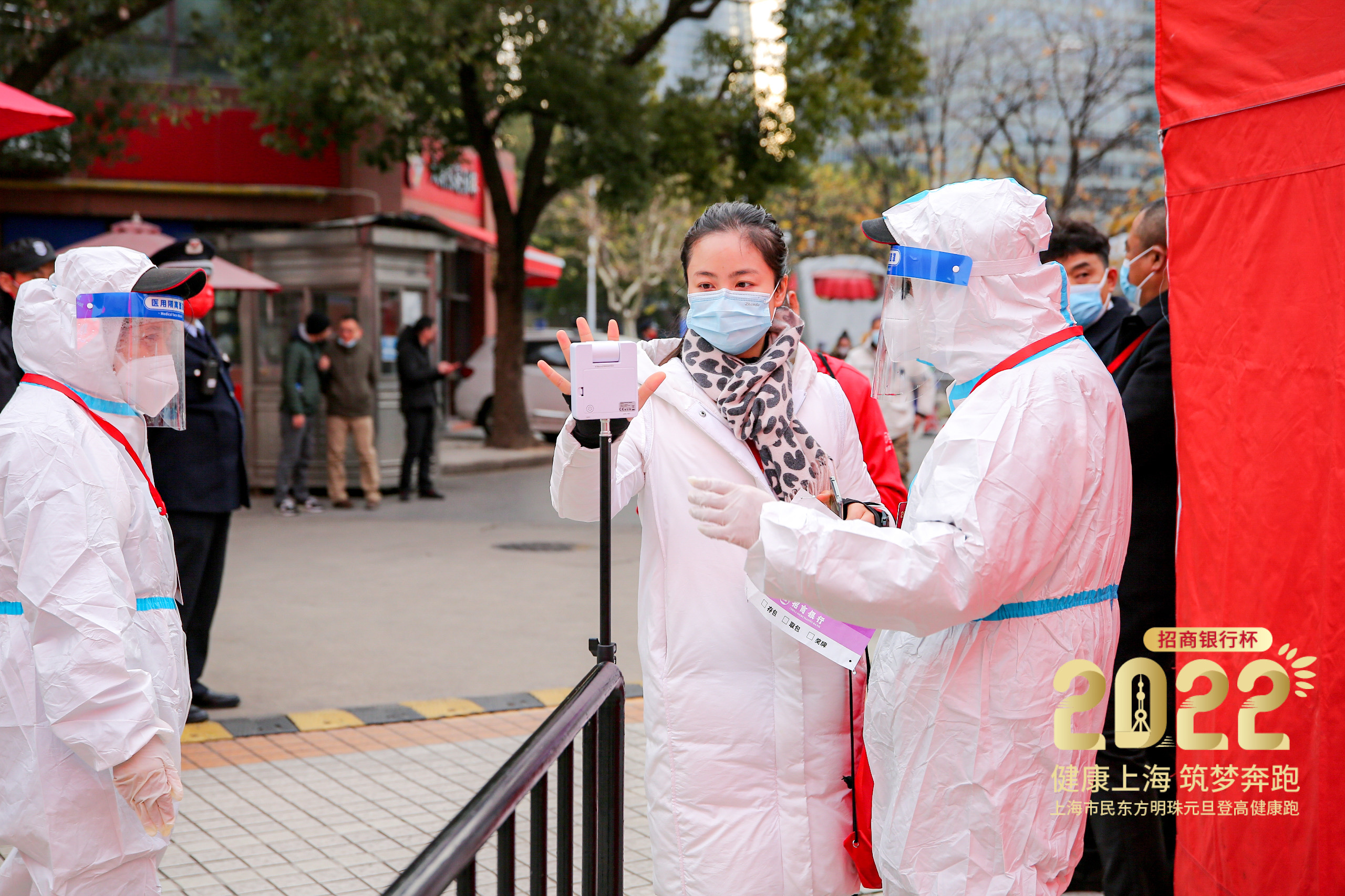 1月1日一早,东方明珠广播电视塔在活动入场处设置防疫点,对所有参与人员逐一进行体温检测和健康码核验,全面做好防疫和安保工作,确保赛事活动圆满举行。比赛全程,工作人员始终做好相关防疫工作,时刻确保活动安全顺利进行。
