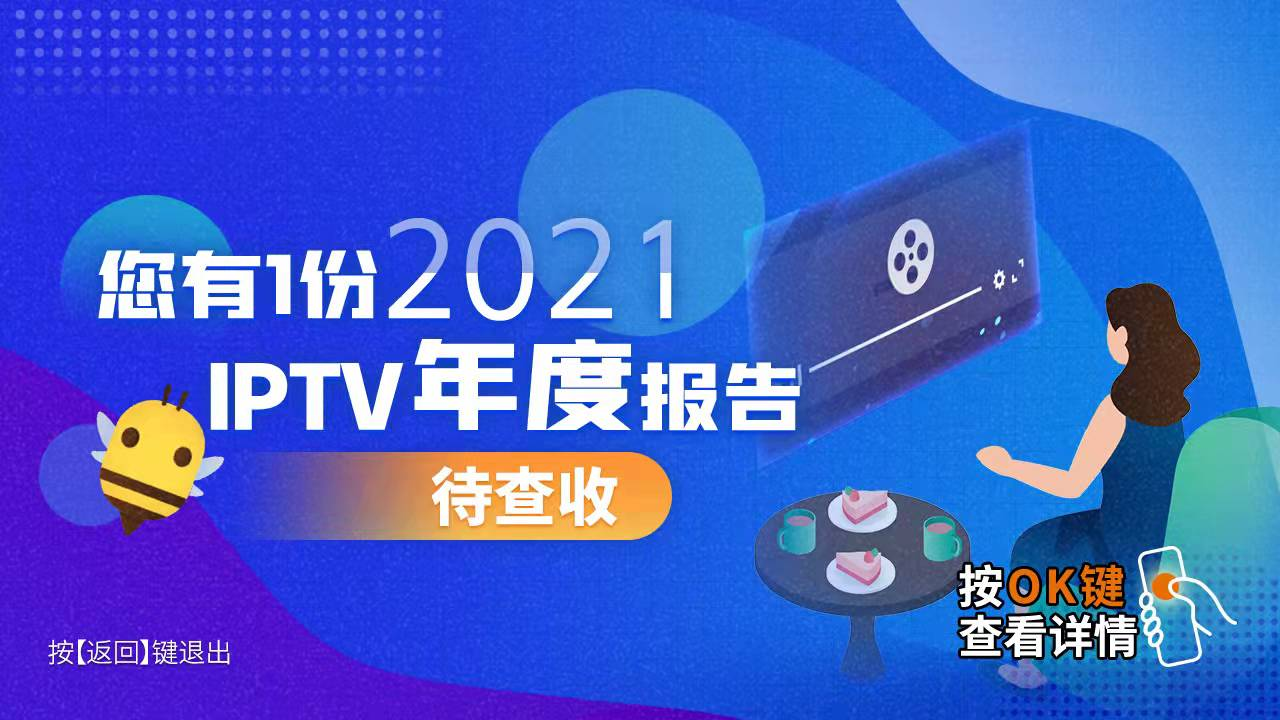 这项功能在百视通合作的三家运营商IPTV首页同步上线,用户在开机页点击报告专区,就能查看自己2021年全年的收视情况总结,这也是全国IPTV平台首次上线用户个性化收视报告。