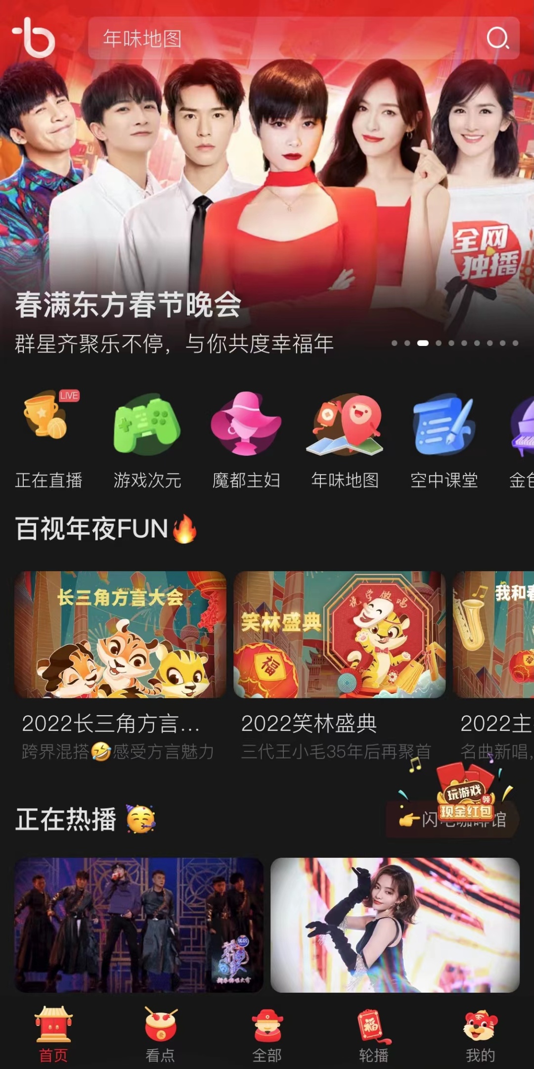 百视TV推出“年夜FUN”线上专题,节目涵盖SMG春节晚会独播、多家卫视春晚、百视通IPTV、OTT围绕新春主题,重磅打造春满东方专区,直播《春满东方 点亮幸福·2022东方卫视春节晚会》。此外,百视通大年初二通过互联网电视业务平台多个渠道同步上线了《中国梦 我的梦——2022中国网络视听年度盛典》,激励全行业奋发有为以优异成绩迎接党的二十大胜利召开和“中国梦”提出十周年。