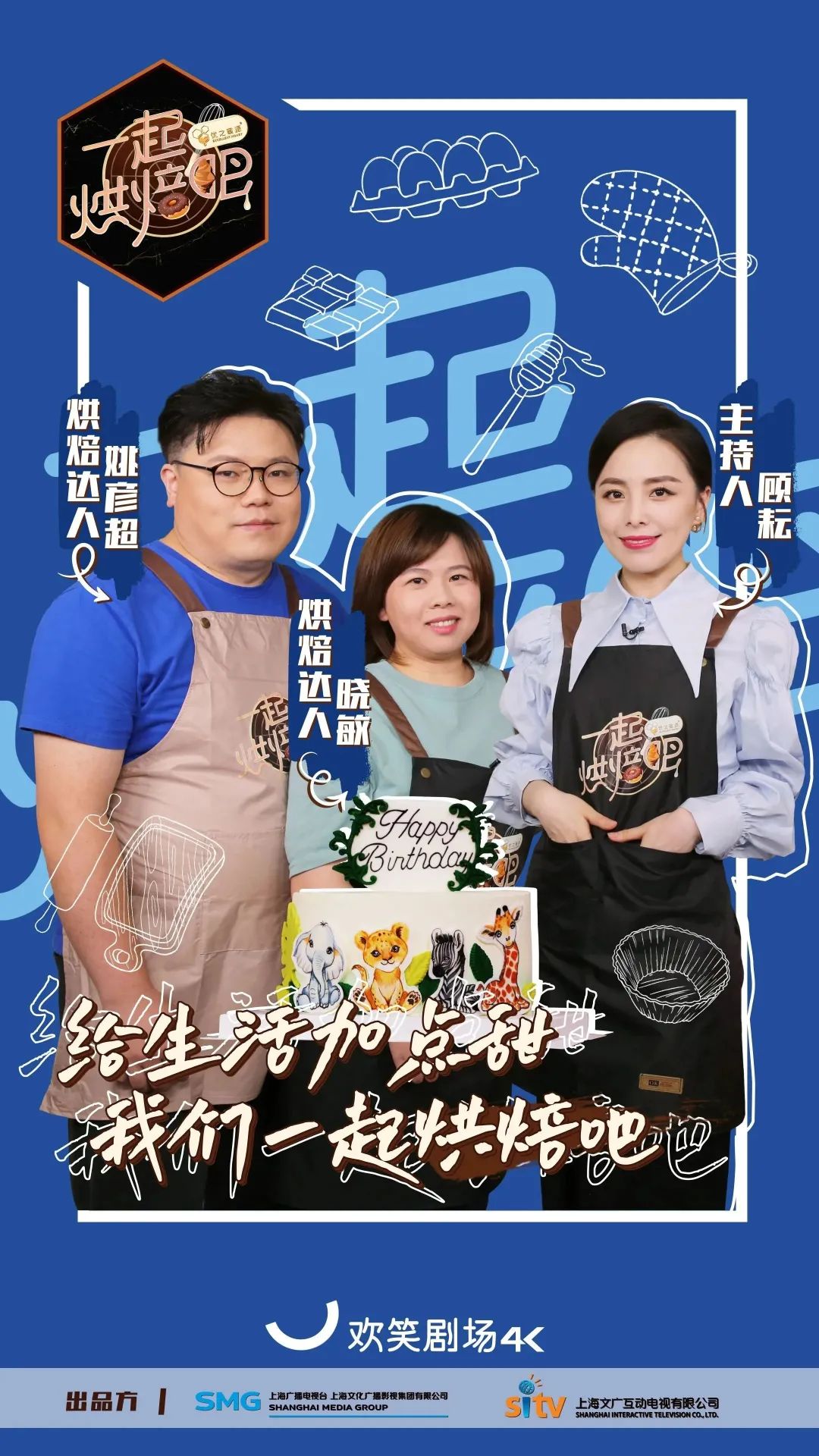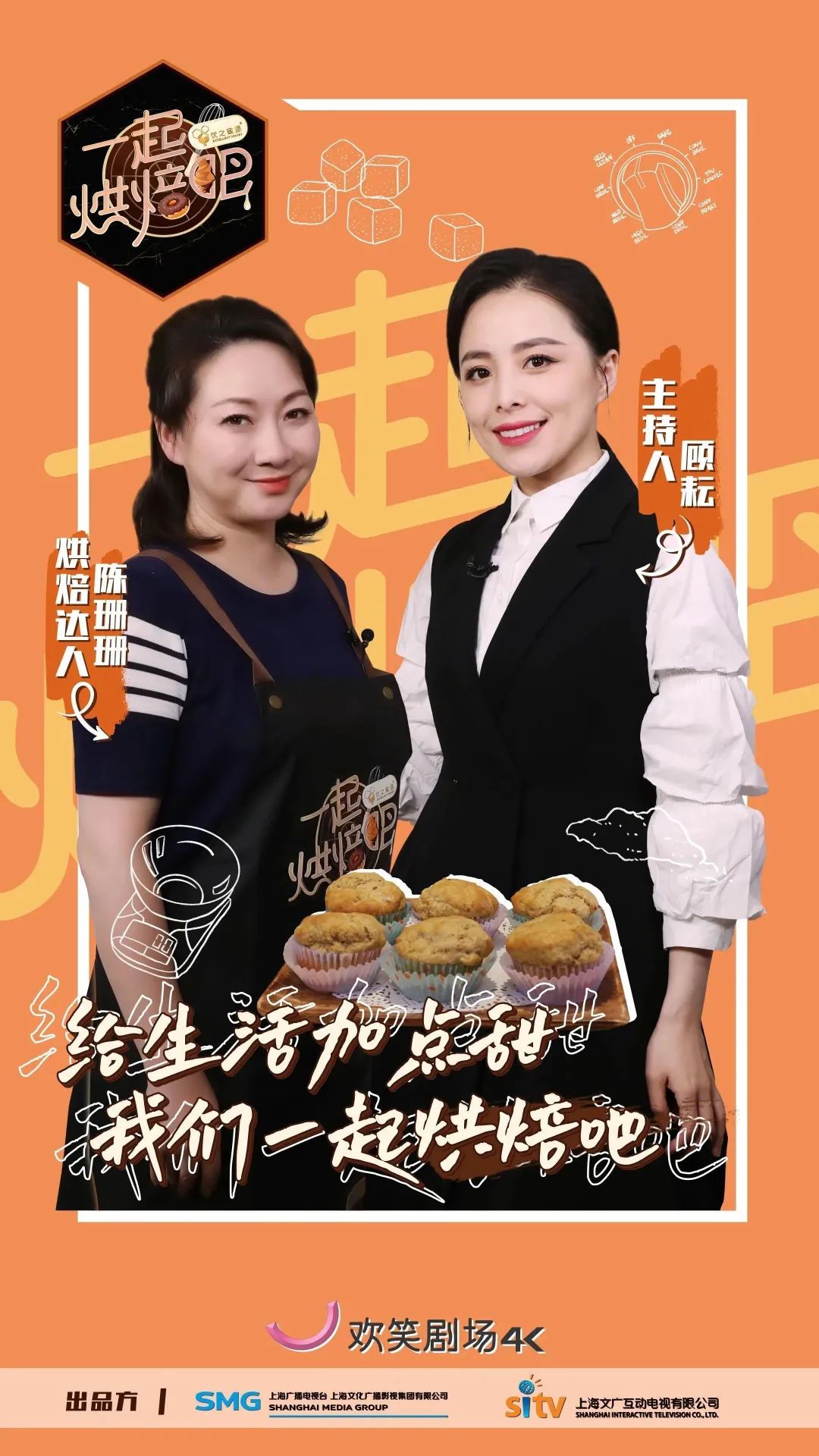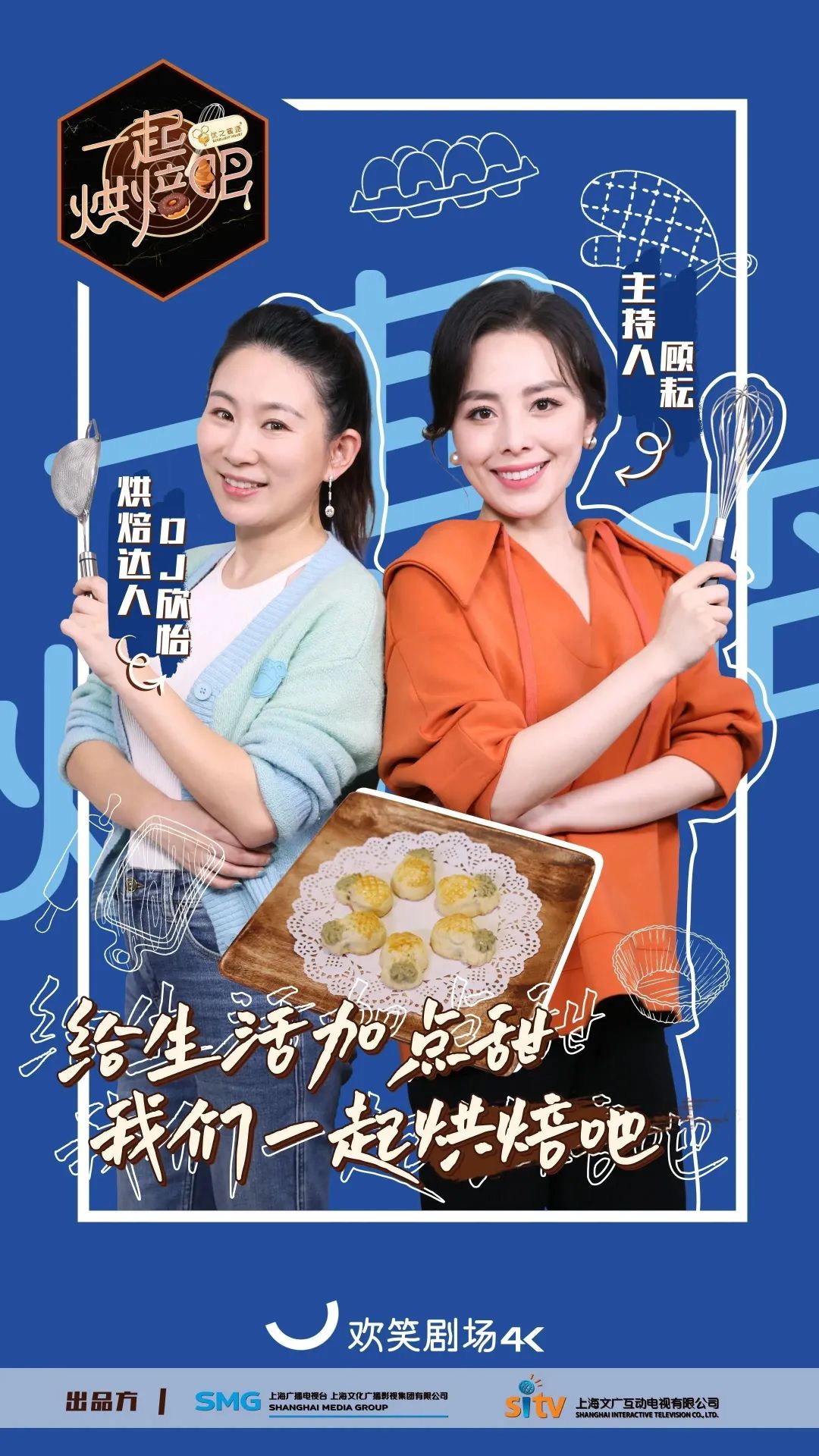 《一起烘焙吧》是继《国厨来了》后,又一档在4K超高清频道欢笑剧场播出的4K超高清自制节目。《国厨来了》让大家体会到“食不厌精脍不厌细”的精致国宴料理,那么这档最新的诚意之作《一起烘焙吧》,将在之后3个月的时间里,带领大家一起进入美妙的甜品世界,用美味甜品和温暖故事陪伴你度过这个冬天。