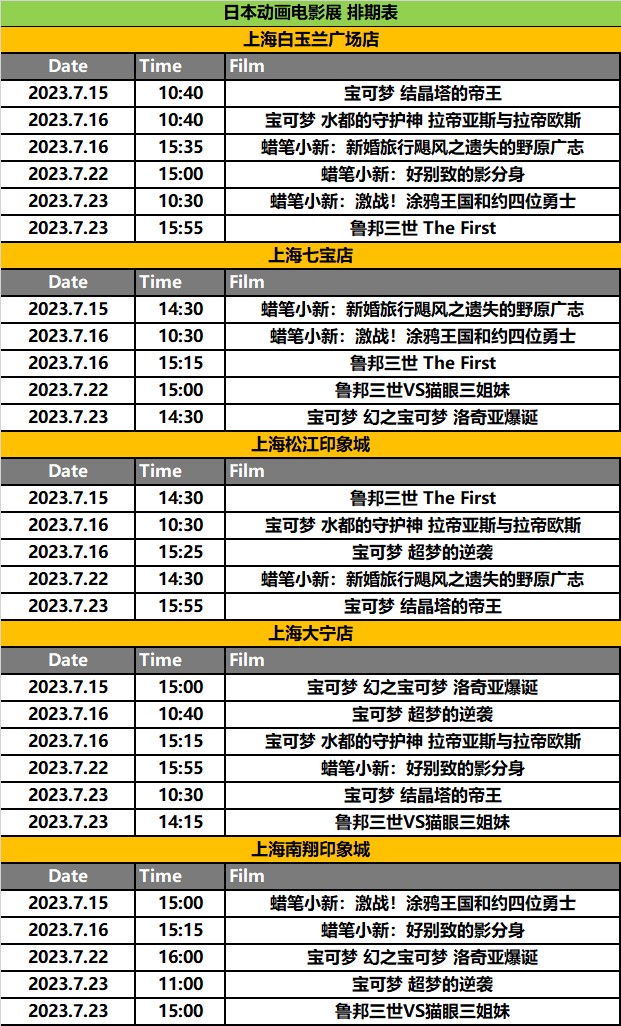 今年CCG EXPO的精彩还不局限于展馆内。在展馆外,组委会与欧桦文化、CGV影城携手推出“动画电影嘉年华2023——日本动画电影展映”。《宝可梦》系列、《鲁邦三世》系列、《蜡笔小新》系列等9部动画电影将陆续在上海5家影院放映,展映活动将持续至7月24日,让漫迷大饱眼福。