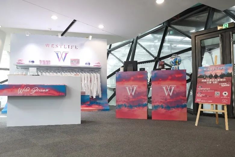 9月8日至24日,西城男孩快闪旗舰店首次登陆梅赛德斯-奔驰文化中心商业区一层钻石厅, T恤、卫衣、毛巾、贴纸等数款西城男孩WILD DREAMS中国巡演限定版周边商品精彩亮相,更有中国限定珍藏系列的戒指、项链等首次发售。购买商品的会员还可参与“扭蛋”抽奖,赢得丰富礼品。快闪店内还设有巨幅西城男孩海报墙,供粉丝歌迷前来拍照打卡。西城男孩通过视频号亲自为钻石厅的快闪店进行“线上带货”。9月9日演出活动结束后,场馆还顺利举办了首次线下观众粉丝专场售卖会,得到歌星和粉丝的一致好评。